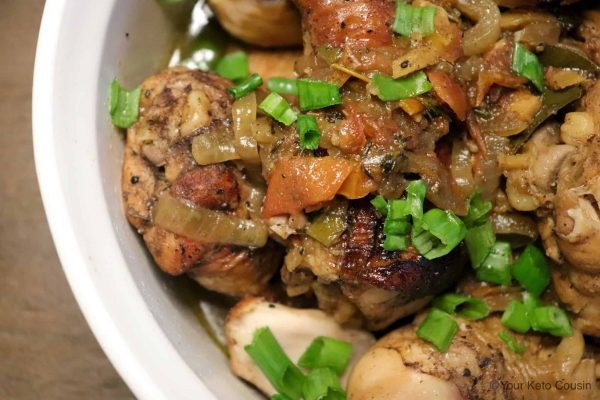 I am Antiguan, so I love Caribbean food, which is usually well seasoned and has a bit of heat. Rice and chicken was on the dinner menu a few times a week growing up. I imagine it is a staple meal in many homes around the world. This is my version of a Caribbean-style stew chicken. I usually eat it with a side of cooked greens like collards or some boiled okra.