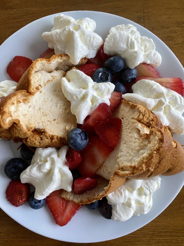 Slowly beat in sweetener, 1 tablespoon at a time, until soft glossy hills form.